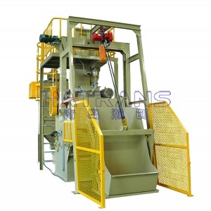HBC多角擺床繞徑向軸線做120°前后擺動,從而保證工件在柔和的翻滾中被清理干凈。拋丸器位于工作區域的正上方,鋼丸集中拋射到工件上,實現最佳利用。